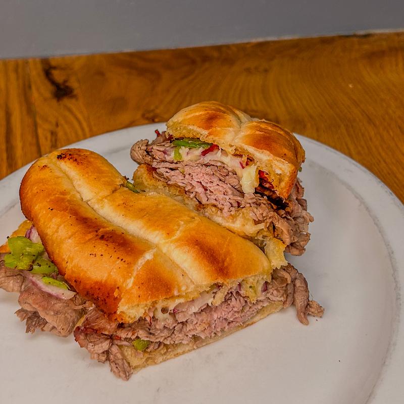 Roast beef, onions, green peppers, and provel cheese. Served w/AuJus | Substitute grilled chicken $1.00